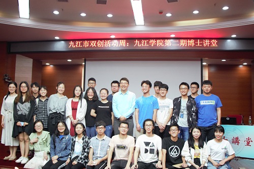 5月30日下午,为迎接九江市双创活动周,为我校第五届“互联网+”大学生创新创业大赛决赛预热。由学工处、团委主办的第二期博士讲堂开展创新创业报告会,第四届中国“互联网+”大学生创新创业大赛国赛评委、校友詹朋朋博士作了题为“如何在创业路演与赛事中脱颖而出”的精彩报告。参加“互联网+”大赛的学生创业团队200余人聆听了报告,报告会由团委书记闫来英主持。