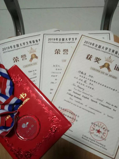 “我希望自己能够向他们学习,从他们的优秀中获知自己的不足。”获奖得到的快乐和荣誉与身后的付出是分不开的,听、说、读、写、译五大部分,邱淼洋个个没有落下,正所谓台上一分钟,台下十年功。