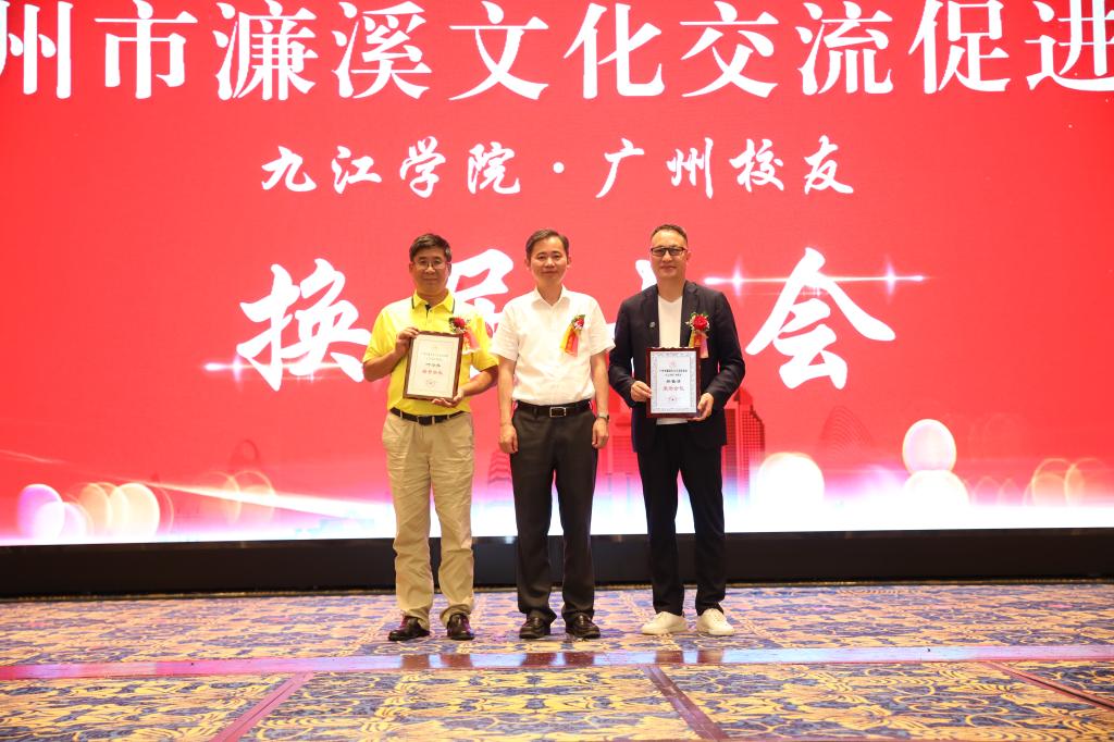 随后,赵伟为新任会长谭益忠授牌并对其表示祝贺,同时为荣誉会长吴春清、叶念乔授牌。