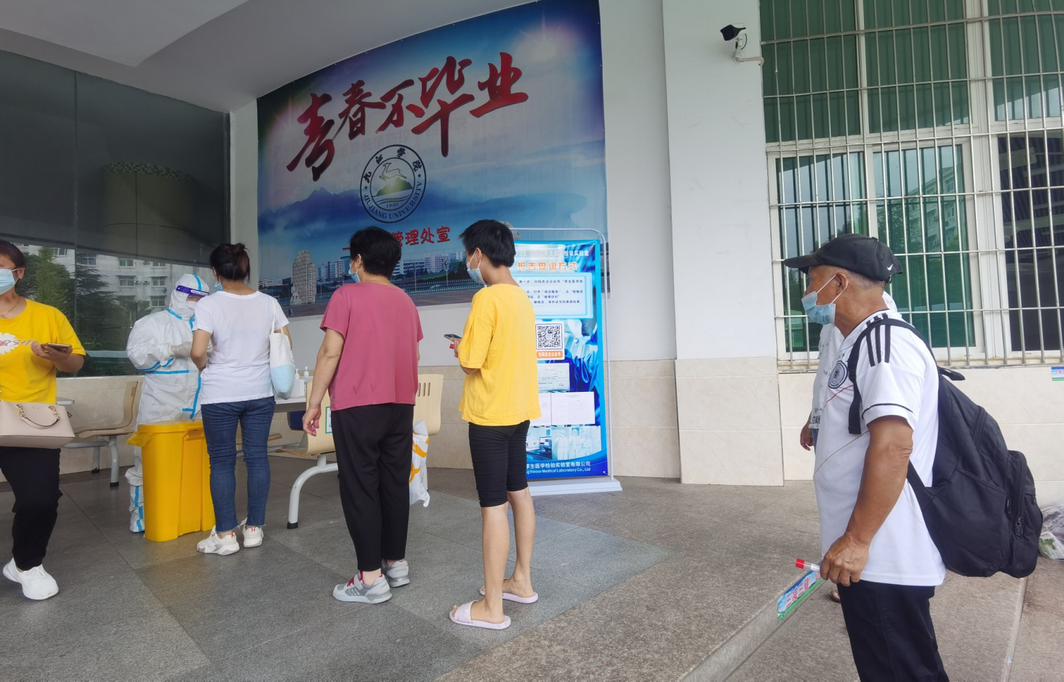 秋季开学在即,为积极响应江西省疫情防控工作部署安排,落实市疫情防控指挥部《关于强化新冠病毒核酸检测筛查工作的通知》关于重点行业人群“应检尽检”工作要求,做好校园的疫情防控工作,8月26日,我校组织全体后勤管理处职工进行第一轮新冠病毒核酸采样、检测。校长陈小林、副校长杨耀防等校疫情防控小组领导亲临现场指导。