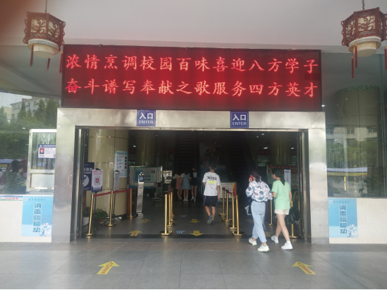 条幅年年挂,但每条条幅寓意深刻、琅琅上口,都是由饮食服务中心干部员工用心思考、总结、凝练而成,它们凝聚了饮服人多年的思想理念,折射出饮服人的火热之心,表现出了饮服人对2021级新生的热情服务。鲜艳的红色条幅在每个餐厅指定位置进行精心悬挂,营造出欢快、喜庆、温馨、文明、和谐的迎新氛围,让新同学有回家的感觉。