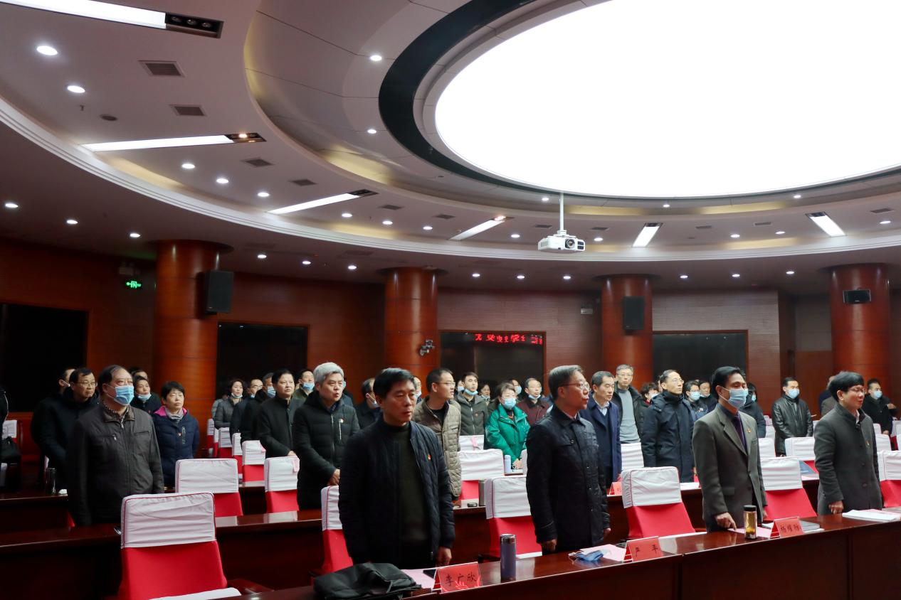 会议正式开始前,与会人员全体起立,高唱《没有共产党就没有新中国》《团结就是力量》两首红歌。