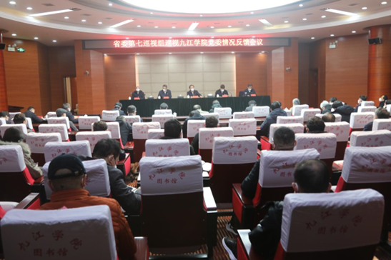 省委第七巡视组正厅级巡视专员刘立松及有关同志,省纪委省监委、省委组织部、省委巡视办有关负责同志,九江学院院长陈小林及全体在家校领导,各机关部门和二级学院负责人,副处级干部、副高以上职称教师和民主党派人士代表和学生代表参加会议。