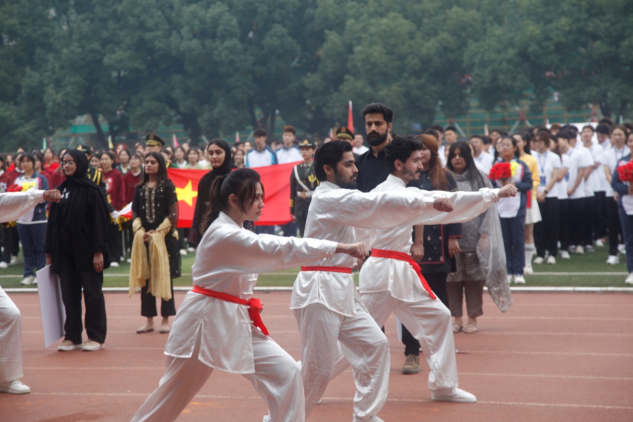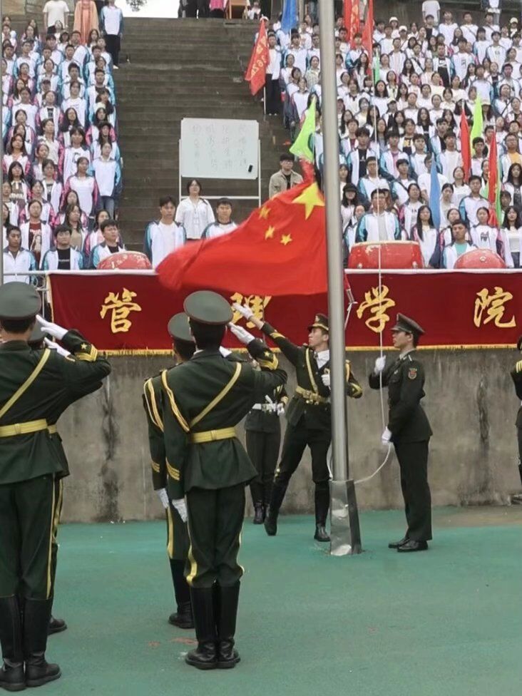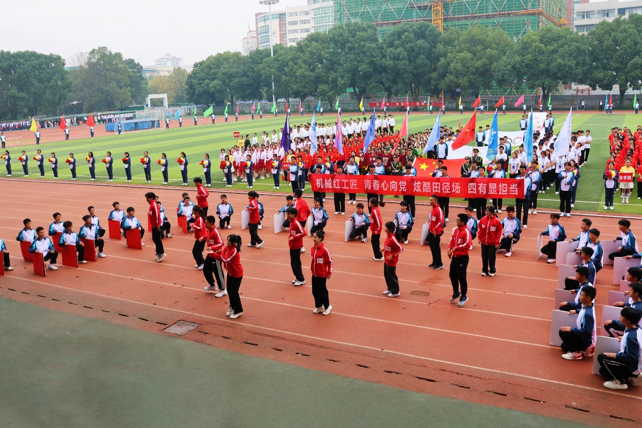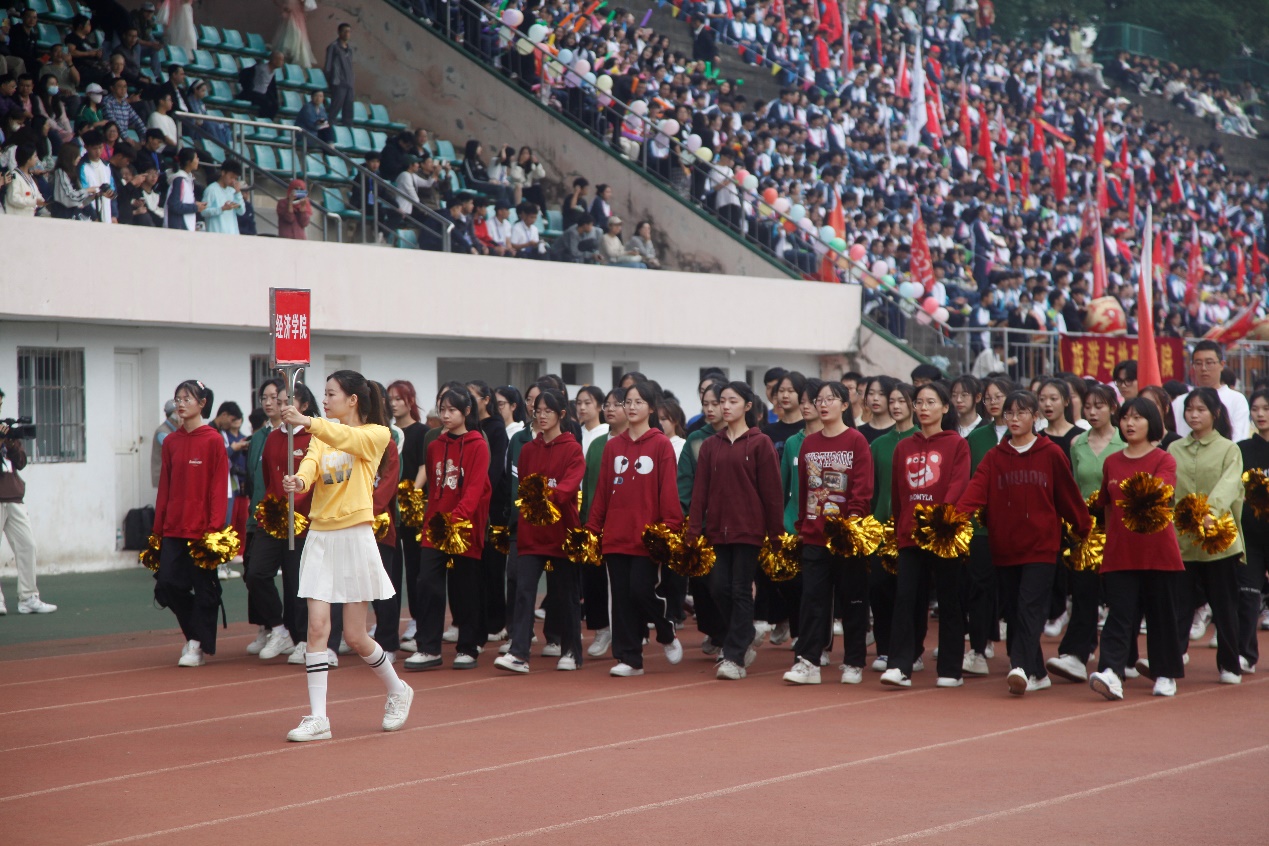 伴随着《运动员进行曲》铿锵有力的歌声,国旗、校旗、运动员会旗和会徽,以及鲜花队、彩旗队、各二级学院和教职工运动员组成的21个方阵队依次经过主席台。