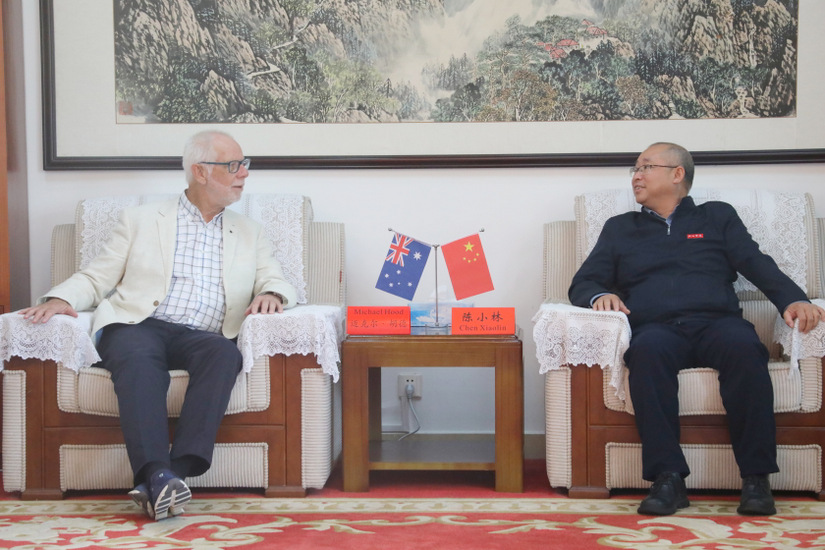 5月6日,中国工程院外籍院士迈克尔·胡德(Michael Hood)教授一行访问我校。校长陈小林与迈克尔·胡德院士座谈交流。陈小林代表学校向迈克尔·胡德一行的到来表示欢迎,并介绍了学校的发展历程,以及近年来在学科建设、人才培养等方面取得的成果,希望能借此机会加强交流,推进学校国际化建设。迈克尔·胡德介绍了自己在岩石力学、矿产安全、能源转换等领域的研究成果。他表示,将协助推进澳大利亚昆士兰大学与我校开展合作。
