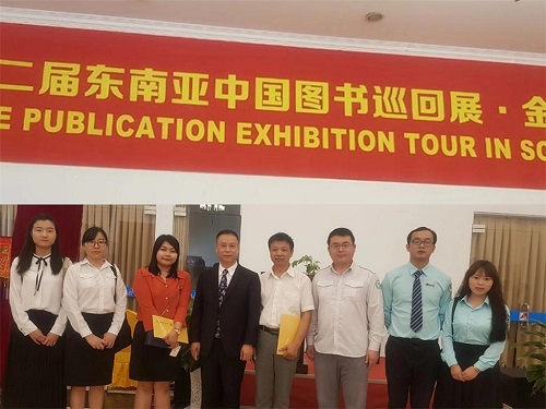 10月21日上午,由中国书刊发行业协会和福建省新闻出版广电局主办、厦门外图集团有限公司和柬埔寨福建总商会承办的第二届东南亚中国图书金边会场巡回展在金边市武夷大酒店顺利举办。中国图书巡展团团长林清发,柬埔寨文化部出版署、创作管理局、教育部等官员,柬埔寨皇家大学,柬埔寨福建总商会,柬华理事总会,金边华校代表及学生,在柬华人组织代表到场祝贺。柬埔寨皇家科学院孔子学院中方院长柴克清、柬方院长苏碧娜(VUTH Sopheakna)及公派教师户社芳、黄青山、刘振、志愿者教师黄书、韩兰草受邀参加。