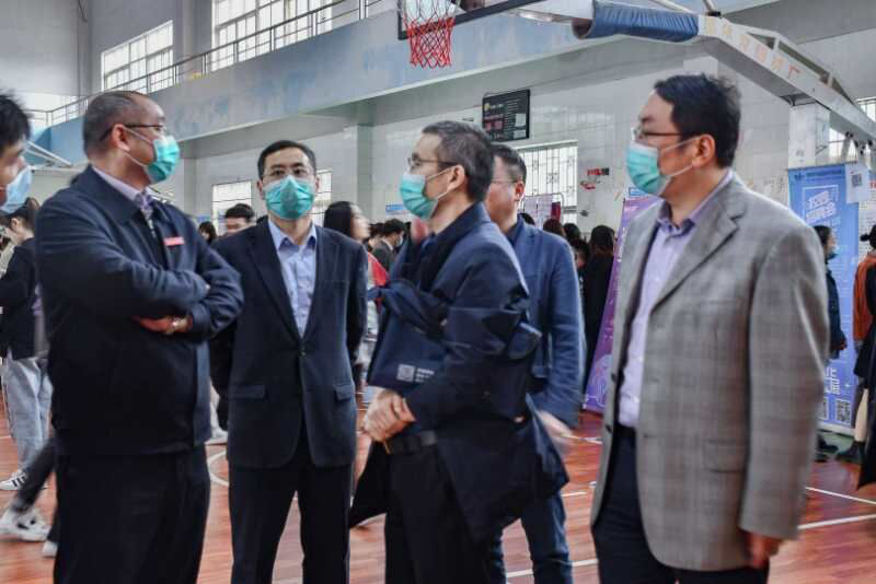 在招聘会现场,副校长王万山、夏启国、陈春生、陈小林观看了招聘单位信息,了解了用人单位工作环境、员工资薪待遇、招聘要求等基本信息,并与企业代表、毕业生代表进行交谈,询问了毕业生就业意向和应聘情况。校领导对在场毕业生积极把握就业机会的态度表示了肯定,希望他们能勇于表现自我优势,赢取理想的职业岗位。