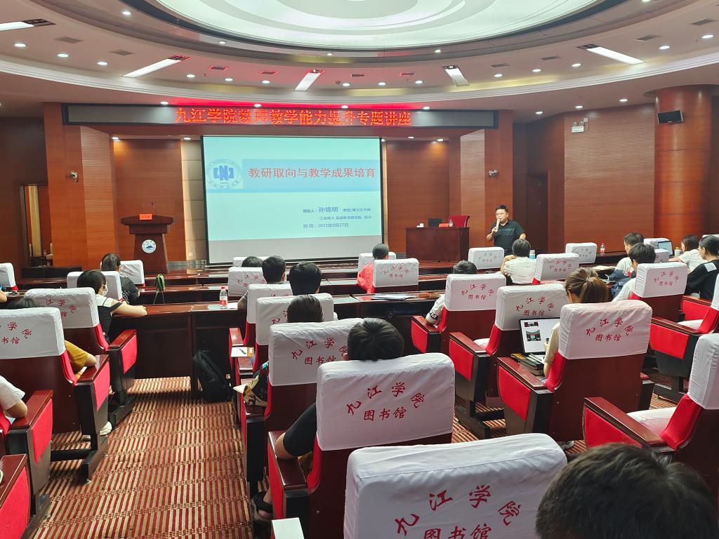 江西师范大学孙锦明教授以《教研取向与教学成果培育》为题,结合自身的研究与探索,从上位的教育理解、到中观的教研主张、再到下位的成果培育,交流分享了教学改革创新的思想与思路,要立足教学实际,结合专业课程建设、人才培养模式创新、教学改革,有针对性的加强研究,以教研促教改、以教改促教学,用理论指导实践,用教研推动一线教学的发展和进步。