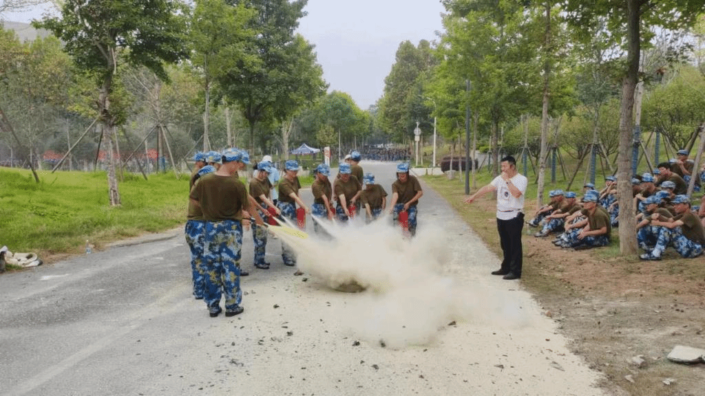 实操环节中,保卫处消防科干事组织学生逐一操作灭火器扑灭火盆中燃烧的大火,让所有参训学生亲身体验灭火感受,有效提高了学生的安全防范意识和灭火实操能力。
