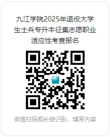 九江学院2025年退役大学生士兵专升本征集志愿报名及职业适应性考查的通知