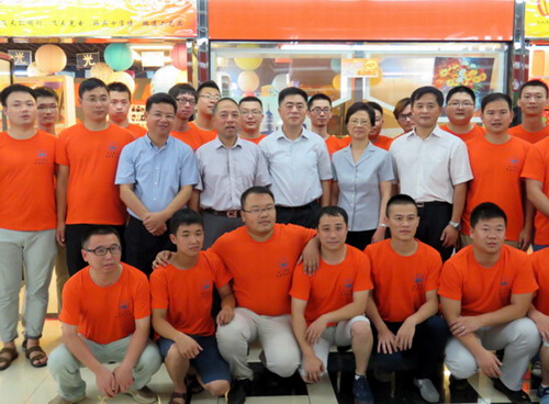 在视察刘鹏飞校友飞天麦光光公司位于义乌国际商品城的展示厅时,朱虹副省长饶有兴致地参观了公司生产的孔明灯、十字绣、数字油画等产品,对于这些产品远销海内外的业绩表示赞扬,并在校友最新研制的多用荧光板上欣然题词:“祝九江学院义乌校友会成为我省大学生创新创业的先锋队。”