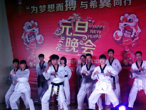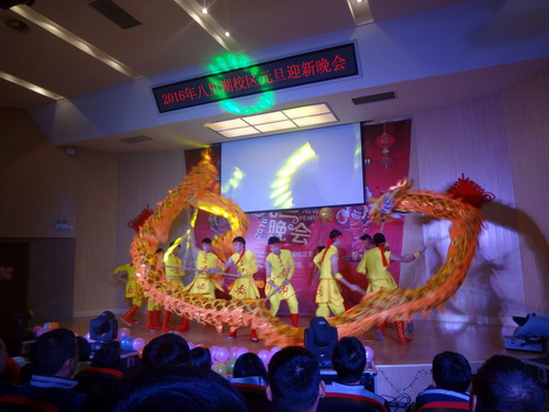 金龙腾跃、虎虎生风,晚会在精彩的舞龙舞狮及中华武术表演中拉开了序幕。八里湖校区管理办公室主任段宝斌致新年贺词。他代表八里湖校区管理办公室党政向辛勤耕耘、无私奉献的八里湖校区全体教职员工及莘莘学子表示新春的祝福!向关心与支持八里湖校区发展的各级领导及各部门、二级学院表示衷心的感谢!祝福大家新年快乐,阖家幸福!祝愿九江学院新的一年更加美好!祝福伟大祖国更加繁荣富强!