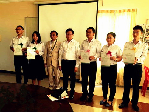 谢索恩副校长高度评价了孔子学院对棉芷大学中文系给予的大力支持与帮助,希望继续与孔子学院保持密切合作关系,加强卜迭棉芷省的中柬文化交流,促进汉语教学的发展。他还感谢中文系汉语教师志愿者不畏困难、兢兢业业,得到了学生一致好评,为棉芷大学的汉语教学做出了突出贡献。他还特地为汉语教师志愿者颁发了棉芷大学优秀外语教师荣誉证书。
