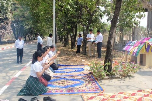 4月1日,柬埔寨王家研究院孔子学院中方院长帅式毅和汉语教师志愿者们参加王家研究院的清明祭祀活动。
