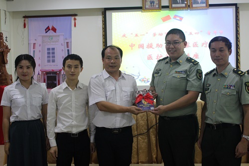 在中国驻柬埔寨大使馆武官处代表王晟的见证下,援柬医疗组向孔子学院赠送了常见病医疗救赠箱。孔子学院也向武官处、医疗组孔子学院编辑出版的《西哈努克时代的柬中关系中柬文版》、《真腊风土记中柬英文版》两本图书。