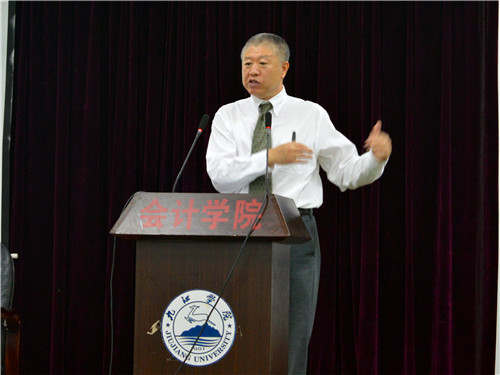 关伟教授从六个方面向同学们讲解了美国大学教育体系。第一,大学类型的选择,他强调在选择的过程中要理性分析,综合考量,谨慎选择自己的理想大学;第二,如何鉴别大学的质量,他从五个方面向同学们介绍了快速鉴别大学质量的技巧;第三,值不值得到美国留学,在这个问题上,学生自身目的、职业设想、求学费用等因素对抉择的影响;第四,如何申请美国大学。他结合自身经历,详细介绍了有关申请日期、材料的完整性、大学间的校际交流等各方面细节要求;第五,修课问题,他结合中西方教学的差异,向同学们讲解了在美国修课所要注意的学分、专业构成、辅导员作用、教学大纲等方面的问题;第六,在美国学习的注意事项,他着重强调了个人在美国社会中的独立性及保持自信的重要性。然后,关教授结合会计专业的特点,着重介绍了美国的金融体系,他采用视频播放的方式向大家直观展现了美国金融的发展,并从资金的转移等方面向大家介绍了美国短期市场及长期市场的发展状况。讲座尾声,关教授和同学们分享了自己的人生体会,并以“自尊,自爱,自信,自立,自强”与同学们共勉。最后,罗书记作了简要的总结,讲座在一片热烈的掌声中结束。