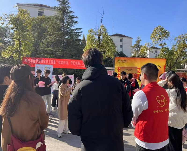 在第38个“世界艾滋病日”来临之际,为增进在校大学生对艾滋病的科学认识,提升防艾抗艾能力,营造健康无“艾”、友善和谐的校园环境,11月26日下午,校医院联合濂溪区疾病预防控制中心、濂溪区人民医院,在学校竞知楼举办防艾知识讲座,在三食堂广场开展艾滋病防治主题现场宣传活动。本次活动以“社会共治,守正创新,终结艾滋”为主题,吸引了大量师生的踊跃参与。
